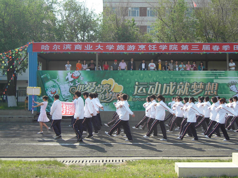 本届运动会历时两个半天。5月23日下午,进行了所有预赛项目。5月24日上午7:30,哈尔滨商业大学旅游烹饪学院“运动成就梦想”第三届春季田径运动会在南区体育场正式开幕。学院院长石长波教授、党总支书记郑昌江教授、副院长张培茵教授、副书记李晓阳副教授、商大酒店常务副总经理杨光顺先生以及学院所有教职员工参加了大会。06、07、08三个年级的学生以及商大酒店组成了十支代表队参赛。