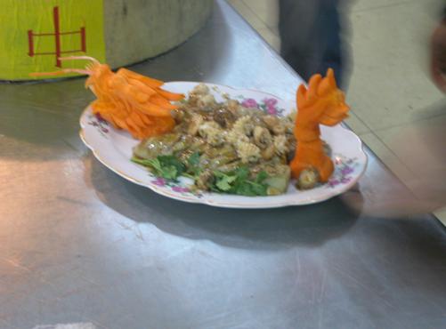 此次为培训班授课的两位同学是04级烹饪与营养教育专业的卢耀东与董康。两位同学厨艺精湛。在活动的前两天,卢耀东与董康分别讲授了两套风格不同的菜。卢耀东的菜贴近生活,易学易做;而董康的菜则与雕刻相结合,品位高雅。他们细致入微的对整个过程进行讲解。随后学员们亲自品尝,而两位同学高超的厨艺也受到了广大学员的一致好评。