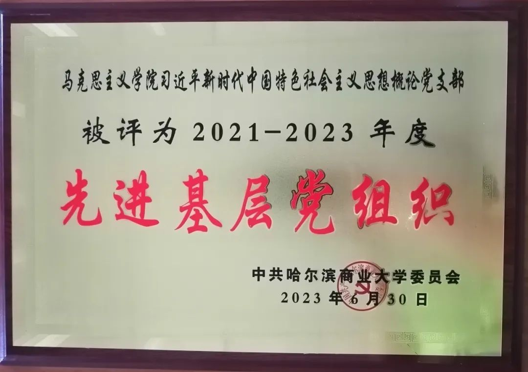 习近平新时代中国特色社会主义思想概论教研室党支部自成立以来,始终将党建工作和教学工作深度融合,同谋划、同部署、同落实、同考核,逐渐形成了“党建工作+教学工作+科研工作”三位一体工作格局。党支部工作业绩突出,荣获2021—2023年度哈尔滨商业大学“先进基层党组织”荣誉称号,教师胡志伟荣获“优秀共产党员”称号。党建引领,赋能发展,在今后的工作中,党支部全体党员将砥砺初心使命,汲取奋进力量,为学校事业发展贡献更大力量。