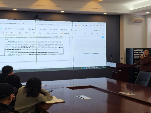 随后,2024年国家社科基金项目获得者,学院副院长陈江波教授结合自己国社科项目的申报过程,从项目申报的前期准备,申报书填写,课题申报的感悟三个大方面作经验分享。期间她还从夯实理论基础,深刻加强前沿性、现实性理论的敏感度,申报选题、研究方向、研究深度、视野广度、申请书撰写重点和技巧、学术前沿选题立意、认真吸收专家建议等方面与全院教师进行详细讲解交流与分享。