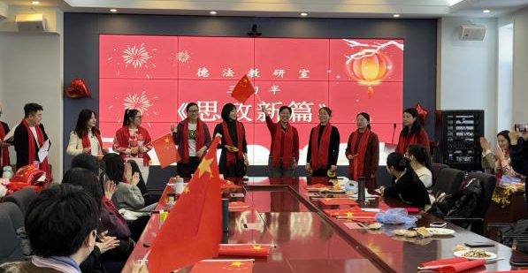 德法教研室全体教师带来三句半《思政新篇》,激昂欢快,振奋人心。