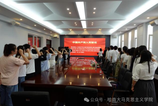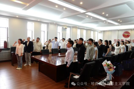 全体毕业生党员在郑秋月书记的带领下重温入党誓词,铿锵有力的誓言回荡在会议室中,彰显了马院学子不忘初心、牢记使命的坚定信念。