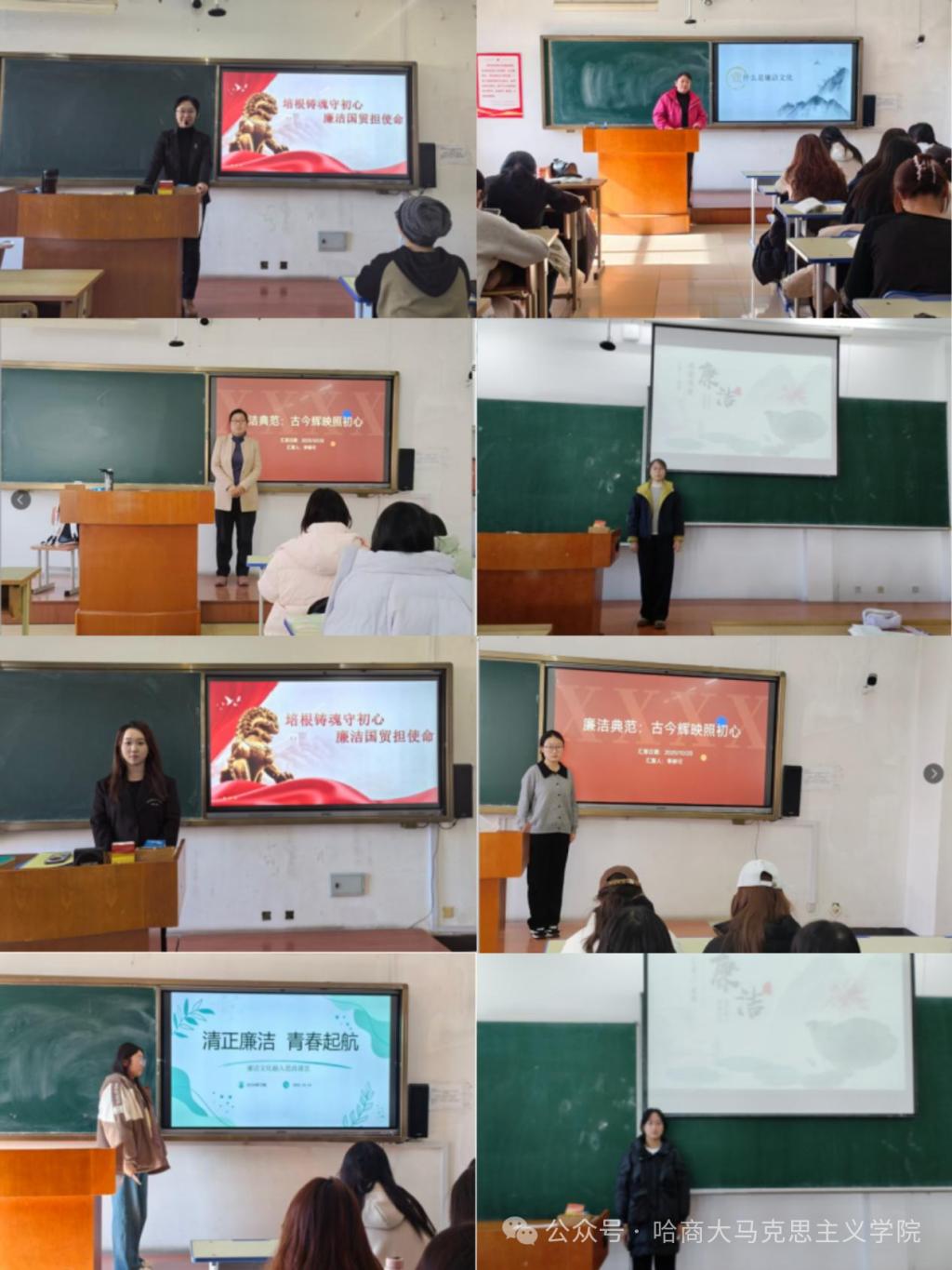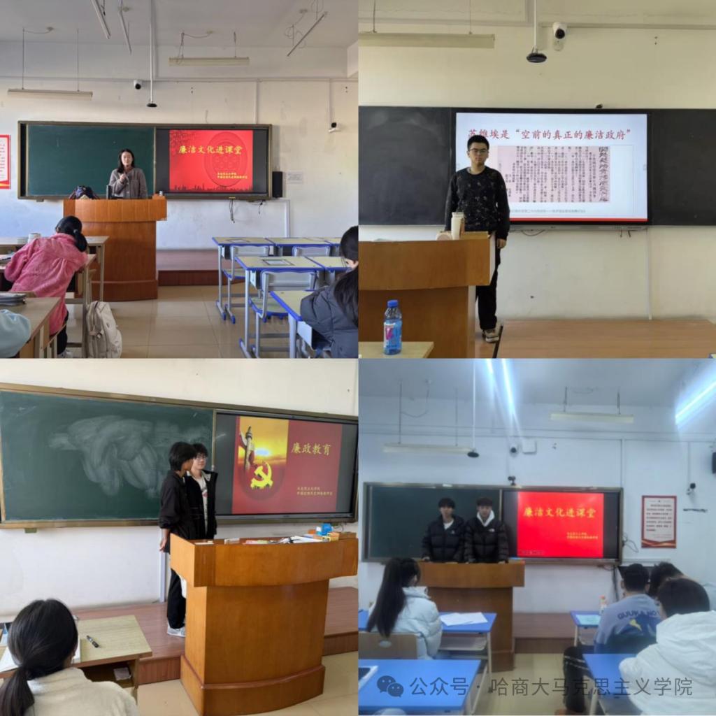 为深入学习党的二十大和二十届历次全会精神,贯彻落实党中央《关于加强新时代廉洁文化建设的意见》,围绕落实立德树人的根本任务,扎实推进廉洁文化建设与高校思想政治理论课教学的深度融合,马克思主义学院坚持每学期开展“廉洁文化”进课堂活动。近日,组织全体思政课教师结合课程内容、创新教学形式,将廉洁文化引进课堂教学,引导青年学生筑牢信仰之基、补足精神之钙、把稳思想之舵。