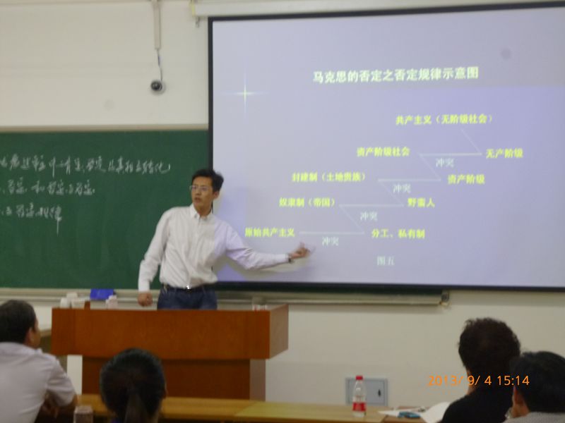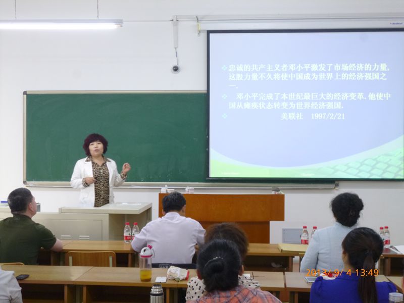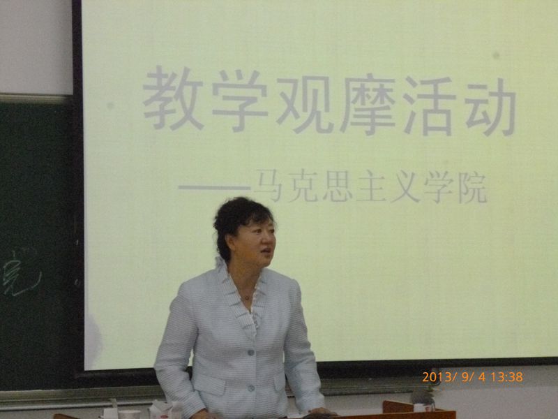 2013年9月4日下午,马克思主义学院在主楼0805教室举办了一场教学观摩会,全体思政课教师观摩了此次教学活动。教学副校长张晓丹、教务处教学质量监控中心副处长刘志国、教师发展中心副主任陈为涛亲临现场进行指导。我院教师裴桂清教授、伍启杰副教授、刘春元教授、丁东宇副教授、李恒星副教授五位选手先后登台做了示范教学。