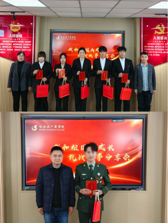 活动伊始,哈尔滨广厦学院校党委委员、宣传部部长赵云龙为活动致辞。他鼓励同学们以爱国为基、以奋斗为姿,在专业学习中追求卓越,在社会实践中锤炼品格,真正实现“我与祖国共成长”的青春誓言。在“故事分享”环节,10名学生依次登台,以饱含深情的讲述带领大家重温峥嵘岁月,聚焦革命战争年代的峥嵘历程,细腻诠释了革命先烈为理想献身的赤诚之心。