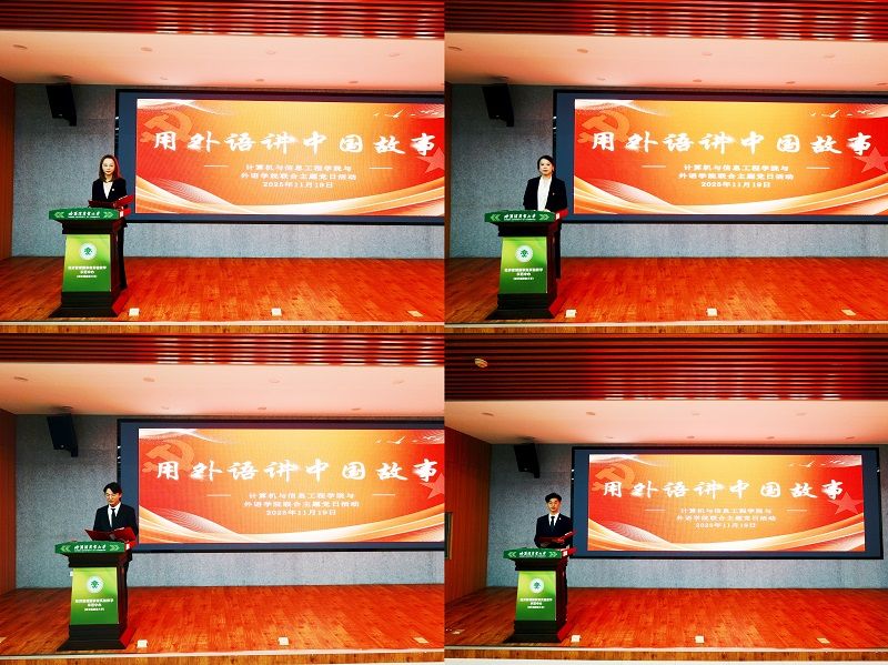 当外语遇上中国故事,当青春碰撞文化传承,一场兼具思想深度与语言魅力的活动在学校4314教室启幕。11月19日,计算机与信息工程学院与外语学院联合开展“用外语讲中国故事”主题党日活动。计算机与信息工程学院团委书记王琨、团委副书记崔哲铭,外语学院团委书记孙志鸿、兼职辅导员梁若茵,以及两个学院的学生党员与入党积极分子代表参加活动。在场师生共同见证这场跨学院、跨语言的文化对话,在跨文化表达中传递中国力量,在理论学习中凝聚奋进共识。