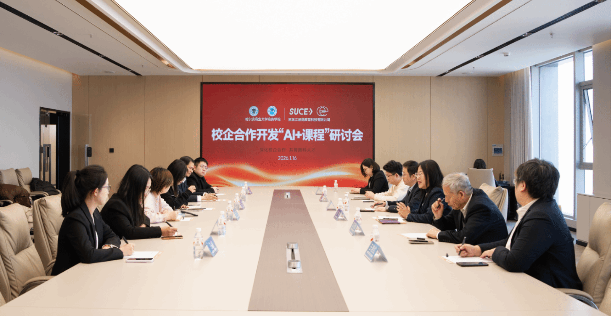 为进一步落实校企战略合作、深化产学研深度融合、推动专业改造与课程建设数智化转型,1月16日,商务学院与黑龙江易商教育科技有限公司联合举办校企合作开发“AI+课程”研讨会。我校商务学院党委副书记、院长易加斌,黑龙江易商教育科技有限公司总经理刘广耀;我校商务学院会展经济与管理教研室主任孟凡胜、工商管理教研室主任王艳红、市场营销教研室主任尚慧丽、学院青年教师代表,以及企业相关部门负责人参加会议。
