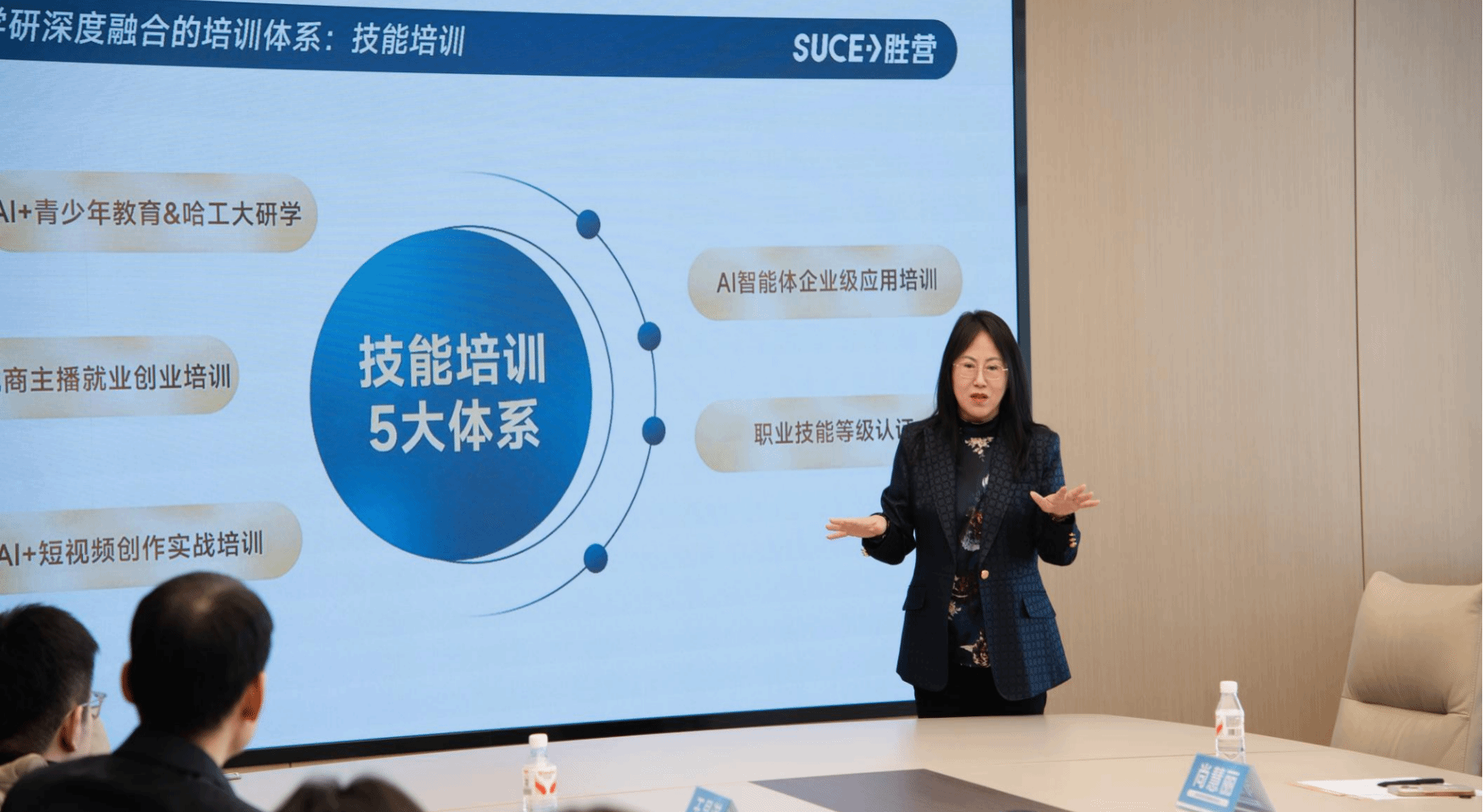 会议最后,双方以“AI+课程”为核心,就进一步深入推动产教融合达成多项共识。一是共同开发“AI+专业课程”“AI+实习实训”“AI+创新创业教育”“AI+就业能力提升”“AI+未来商业领袖”等课程矩阵,助力学院构建涵盖课程开发、实习实训建设、学生素养与能力提升在内的系统性AI赋能人才培养机制;二是以共建产业学院建设为载体,以深化产教融合为驱动,推动学院项目制教学改革各项措施落地生根;三是联合推进案例库建设和“AI+教材”开发,为培养高质量复合型数智化人才提供资源支持。围绕上述共识,双方将建立常态化协作机制,推进学院、学校、社会多方成果转化,提升学生AI素养与数智化能力,为“人工智能+数字经济”背景下的区域、国家经济发展提供人才支撑。
