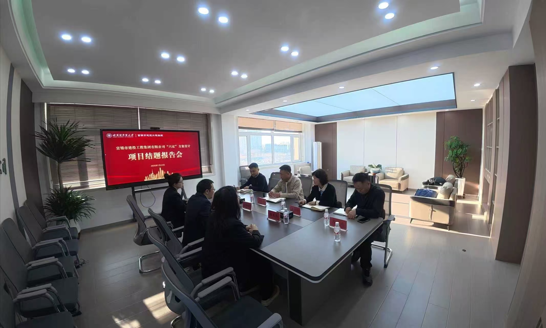 1月23日,课题组第二站与富锦市建投工程集团有限公司召开“六定”方案设计项目结题报告会暨校企合作交流。富锦市建投工程集团有限公司董事长兼总经理马恩华、副董事长王冬玲、综合管理部部长厚学成、党群部负责人徐义钊,我校商务学院“六定”方案课题组成员参加会议。