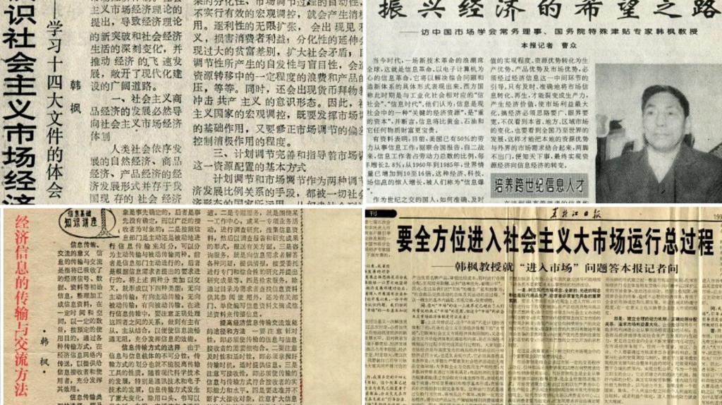 那些与现实问题紧密相联、勇立时代经济潮头的成果,是他理论成果中最有价值和意义的。他撰写了500余篇理论与应用相结合的学术论文,汇编成十卷本的《韩枫集》。其中具有代表性的是《管理是一种强大的生产力》《关于我国国际市场战略的思考》《时间学研究动态》《要全方位进入社会主义大市场运行的总过程》《论资源优势及其转化》《各地制定经济发展战略以可控资源为依据》《实施特产品名牌战略》《对关心下一代成长与发展事业的战略思考》等等,在推进黑龙江省乃至全国的计划经济向市场经济转型过程中做出了卓越的贡献。
