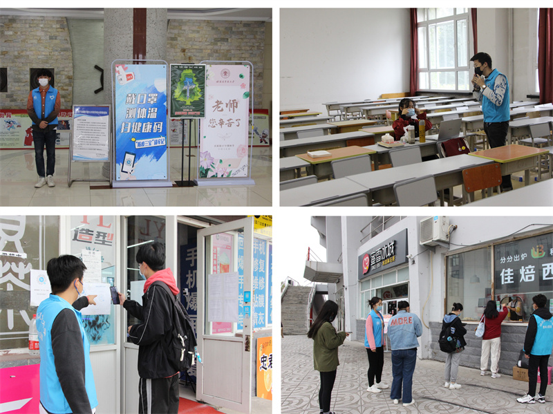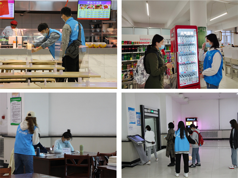 “疫情防控,人人有责”。为进一步提升广大师生疫情防控安全意识,筑牢我校疫情防控安全堡垒,校团委以校院两级“青马工程”学生骨干为牵动,依托院级团组织,组建600余人的校园防疫秩序维护志愿者团队。志愿者们分时、分段的在教学楼、图书馆、食堂、校内商服等人流量较大地域,做好“一米”安全防护距离秩序维护、指导同学们正确佩戴口罩、非必要不聚集劝导等疫情防控志愿服务工作,志愿者们尽职尽责,每天服务时长12小时。同时,志愿者团队还积极配合学校网络与教育技术中心等职能部门,完成疫情防控志愿服务相关工作。