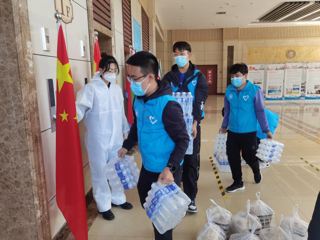 为更好的服务集中隔离区的同学们,校团委还以校学生团委和校青年志愿者服务中心学生骨干为主要成员,组成了14人隔离区志愿服务小组,自9月27日起,每天分早、中、晚三个时段,为我校集中隔离在综合楼的同学们提供送餐、送水及生活物品等服务,累计配送隔离所需物品850份,每人累计服务时长22小时。