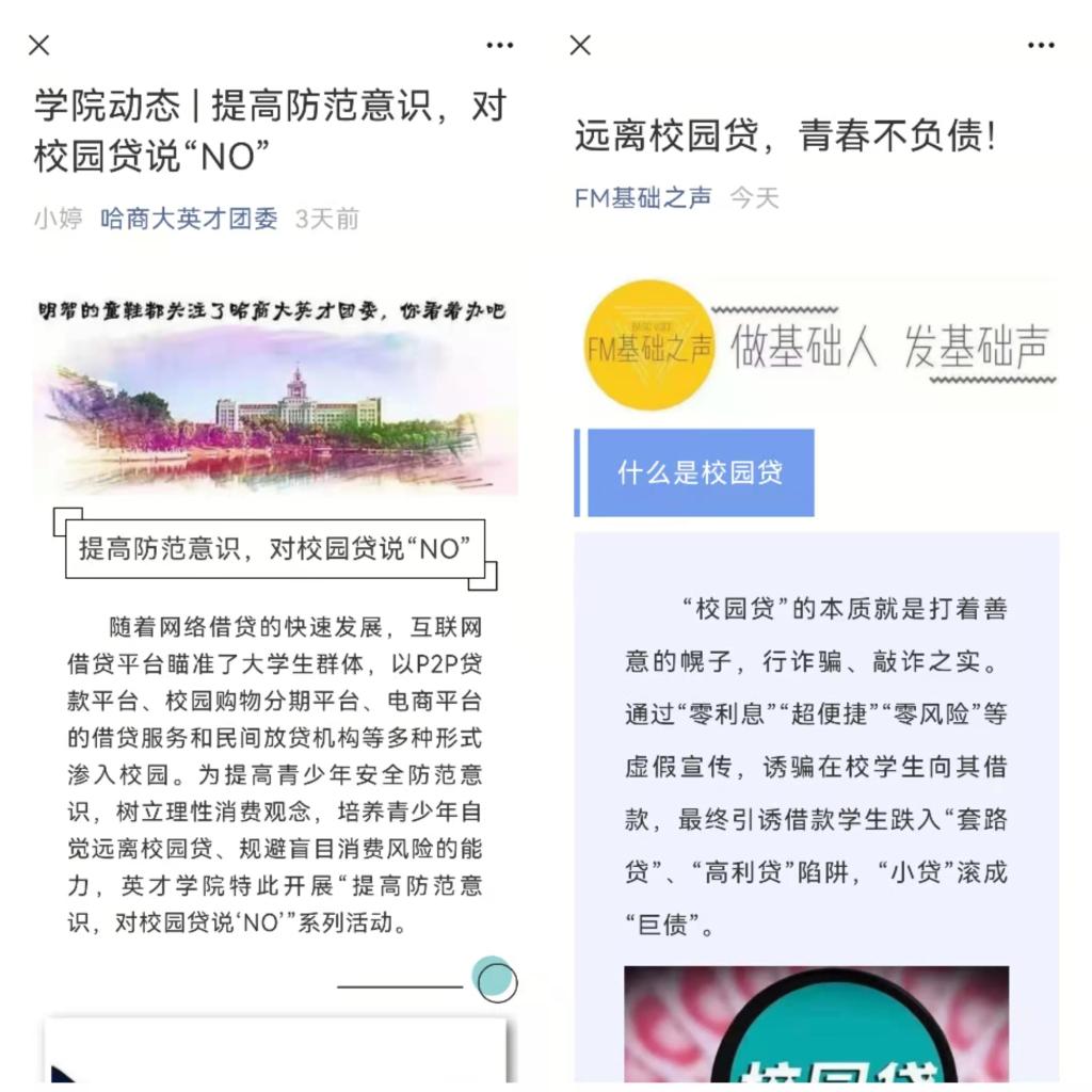 重点强化新生安全教育。针对大学新生金融知识匮乏,对不良网贷甄别能力不强的情况,我校通过教育部易班发展中心网络平台在2021级新生入学教育中重点强化学生的安全教育。同时,采取了向2021级学生发放《哈尔滨商业大学校园贷风险告知书》,要求学生认真阅读并签字确认;制作印发《校园贷风险风范》宣传单,帮助学生了解不良校园贷的典型案例,掌握不良校园贷的分类、危害和如何处理等知识,引导学生树立勤俭节约、自立自强意识,合理消费、理性消费、科学消费、适度消费,帮助其纠正超前消费、预支消费、过度消费、从众消费等错误观念和行为。