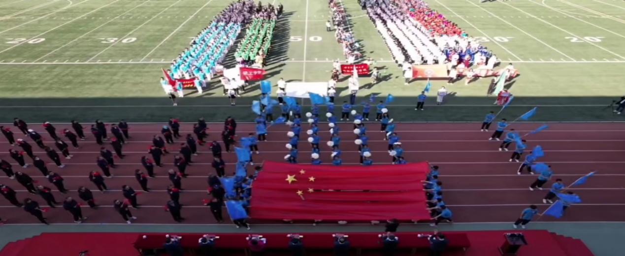 学生方阵步伐整齐显青春活力,老师们面带笑容让人如沐春风,飘扬的旗帜展现学院风采,巨大的名牌彰显学院底蕴。