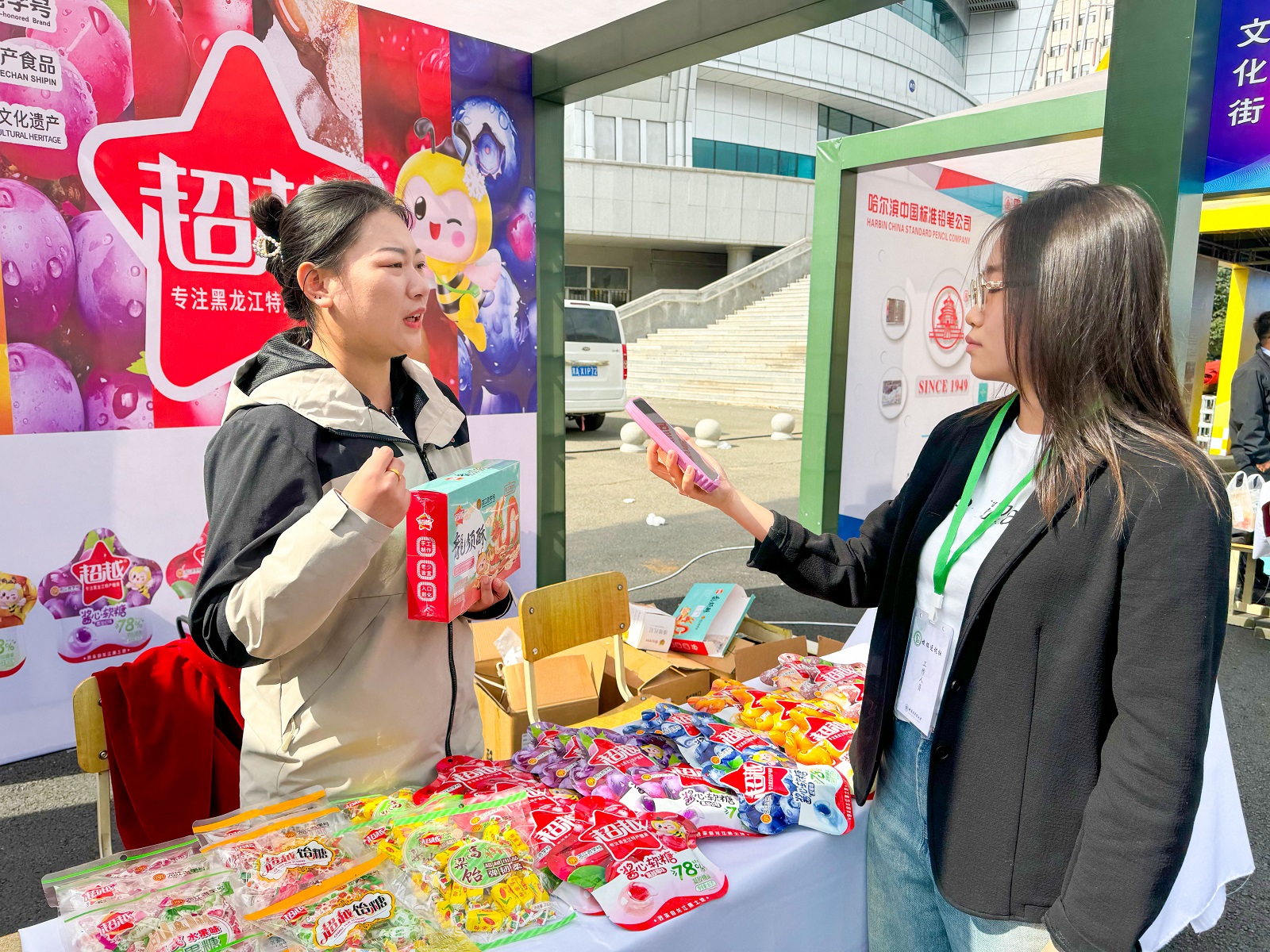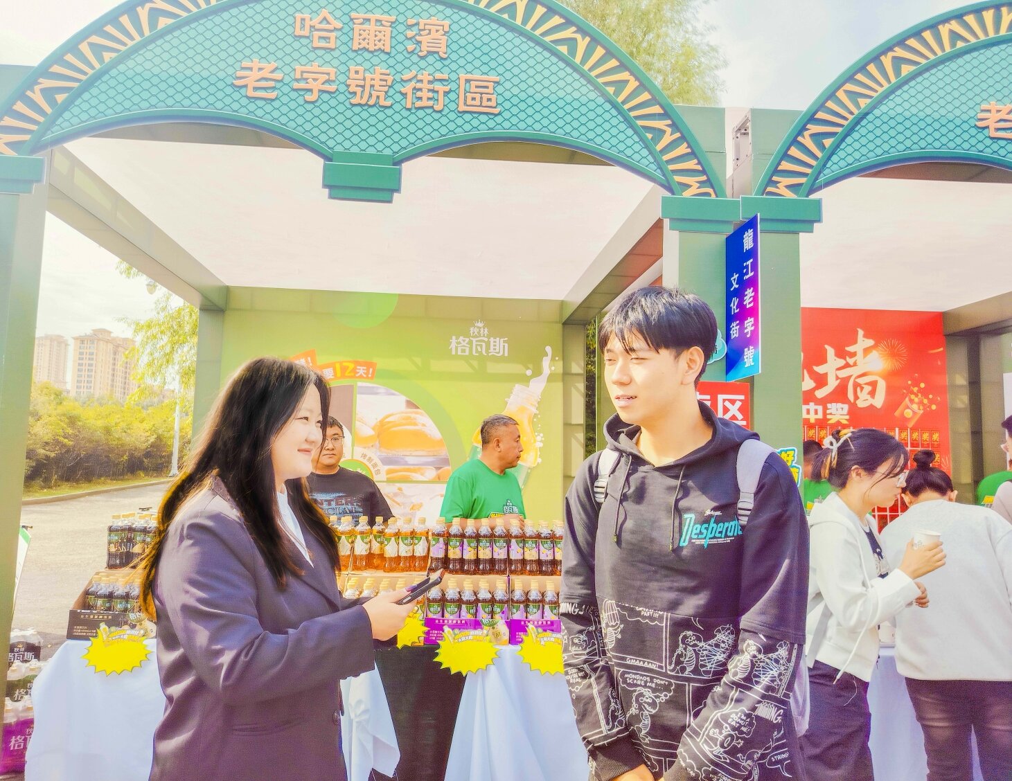 在“老字号文化街”上,人流如织,师生们驻足聆听企业文化介绍,与工作人员深入交流,聆听“老字号”背后的发展历程和品牌故事。这些“老字号”企业,不仅见证了时代的变迁,更承载着几代人的美好回忆。他们扎根龙江、坚守龙江、振兴龙江,用实际行动践行着对这片土地的深厚情感。