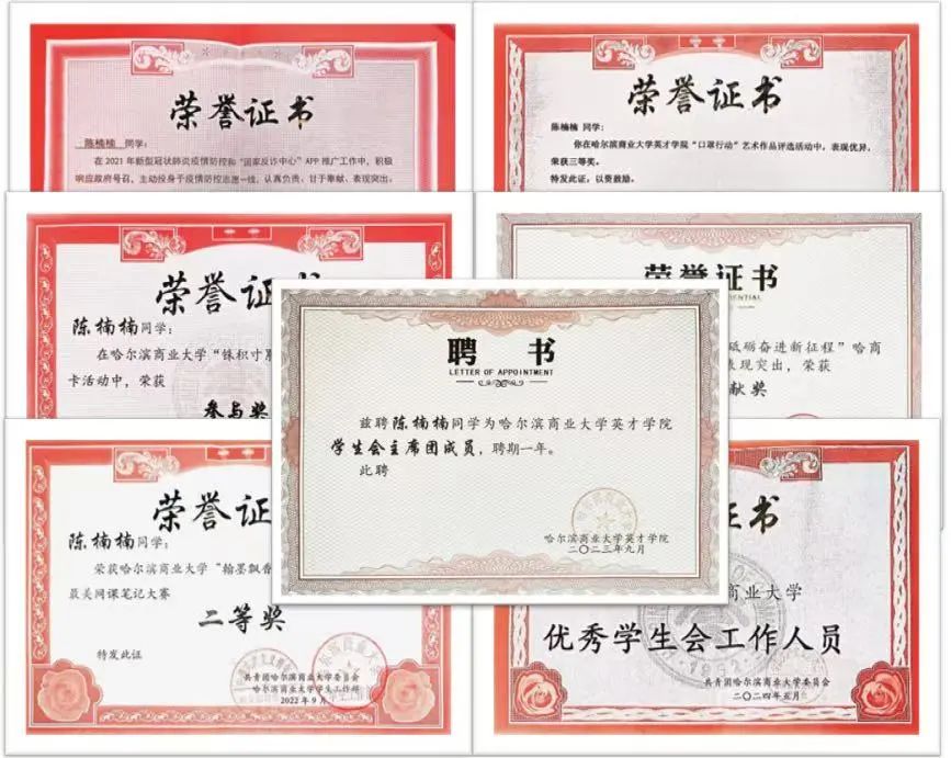 2023学年度哈尔滨商业大学“优秀学生会工作人员”
