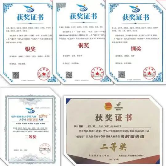 第九届中国国际"互联网+"大学生创新创业大赛黑龙江省级银奖1项、省级铜奖2项、校级优秀奖1项
