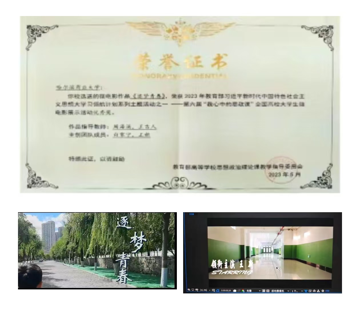 获得了教育部“领航计划”大学生思政课微电影比赛全国优秀奖