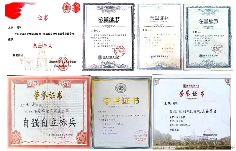 2021级会计学院王新用四年时光在哈尔滨商业大学