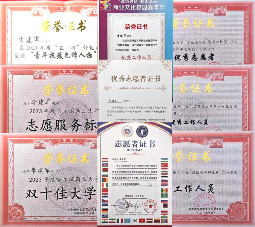 校志愿服务标兵、家乡疫情防控优秀志愿者等
